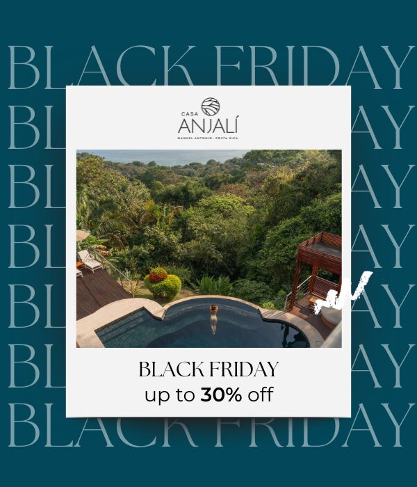Casa Anjali is in the natural paradise of Manuel Antonio, a jewel in the province of Puntarenas, on the west coast of the country. It is one of the most attractive and desirable destinations in Costa Rica, known for its great biodiversity of tropical flora and fauna and easily one of the most beautiful beaches in the world, just two hours and a half away from the International Airport, Juan Santamaria.